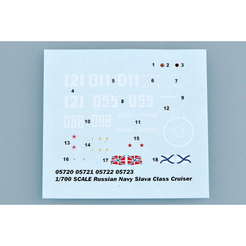 Contiene una hoja de calcas para los 3 barcos: Moskva, Varyag y Marshal Ustinov