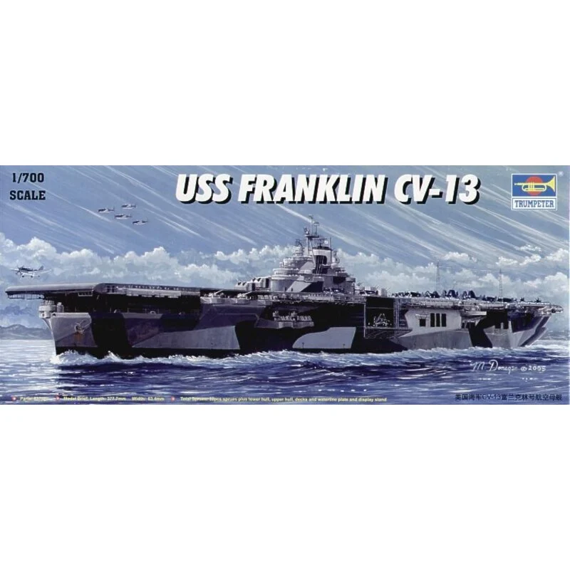 Ficha técnica USS Franklin CV-13 aircraft carrier with blue vac-formed sea base